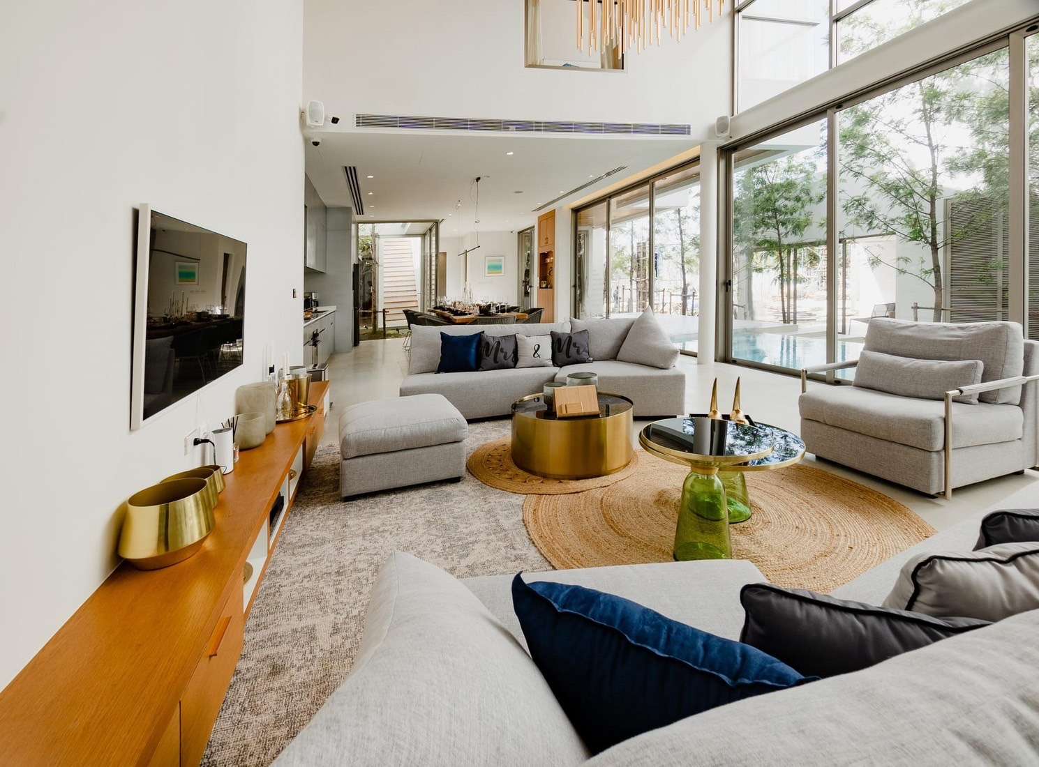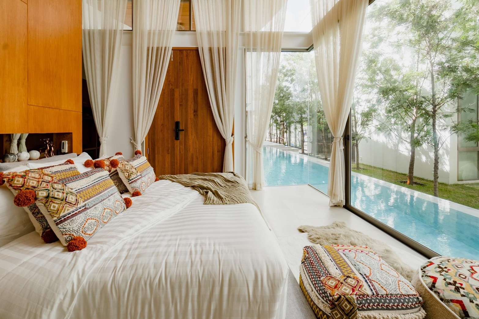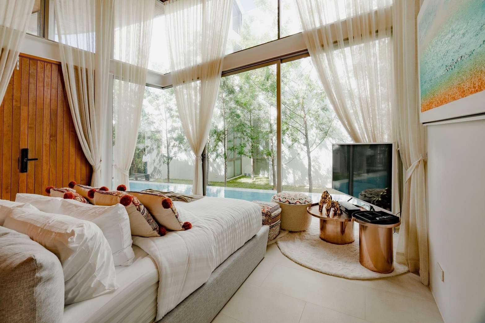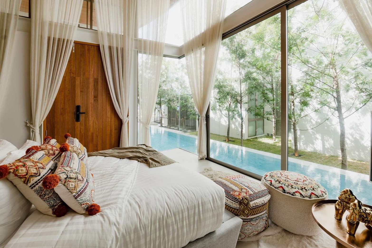 ☑️ Private living room with pool view