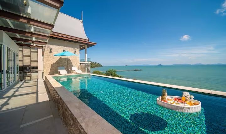 M-005 6 bedroom 12 Number of guests Details 🌊 180° Panoramic Ocean Views Right from Your Bed – Book This Luxury Beachfront Villa in Phuket Today!☀️ Wake up to breathtaking ocean views in this Super First-Line Ocean View Villa, located right