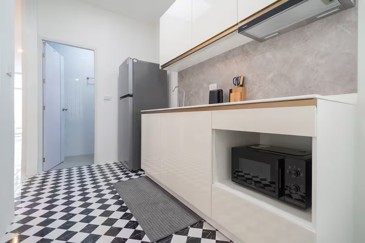 • 🍳 Full kitchen with essentials – fridge, microwave, rice cooker, toaster & more