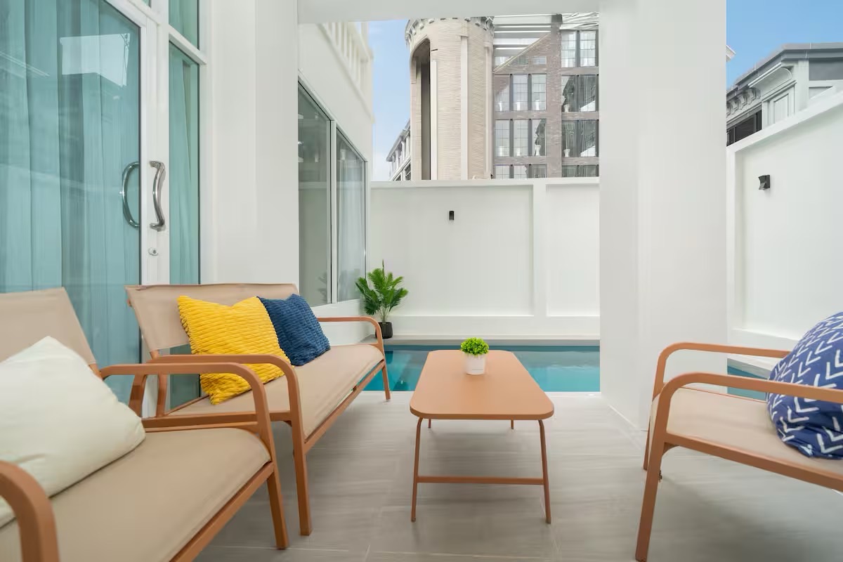 • 🌅 Private balcony & outdoor lounge furniture